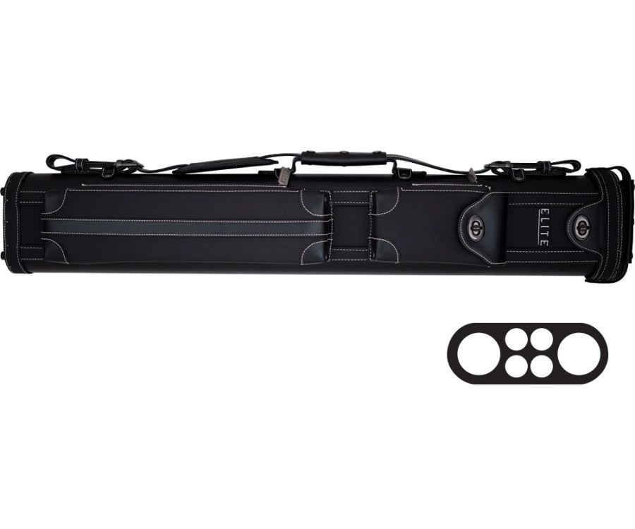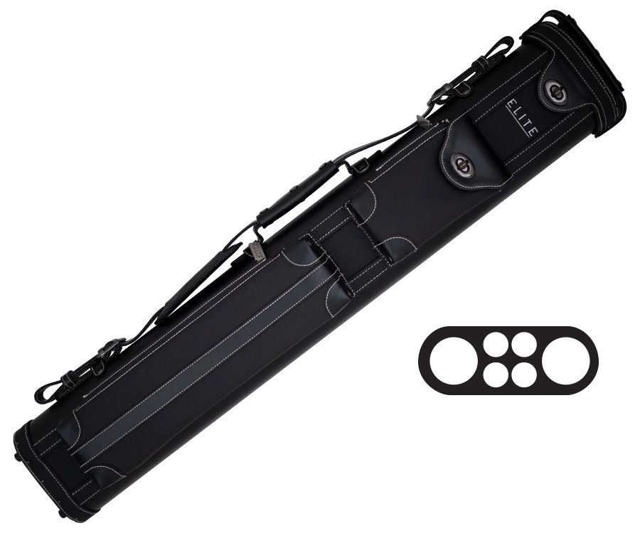 Made of black vinyl and white stitching with all black hardware this case looks sweet. It has carrying handle on the top and side and a shoulder strap.