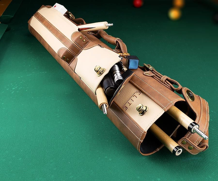 Made of 2 tone brown and white stitching makes this case looks sweet. It has carrying handle on the top and side and a shoulder strap.