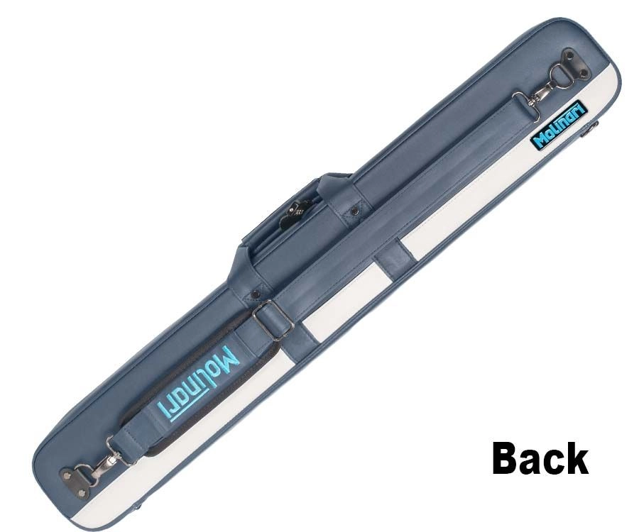 If you are searching for a new pool cue case, take a gander at this navy colored ultra-vinyl flat pool cue case from Molinari. This case features a longer jump pocket on the outside of the case along with a smaller accessory pocket. Inside the case is loaded with amenities! A removable and replaceable sleeve, several additional pockets and a soft lining will ensure that your cues, tools and billiard equipment are kept safe from the elements and will be well protected during trips to and from your local pool hall.Â