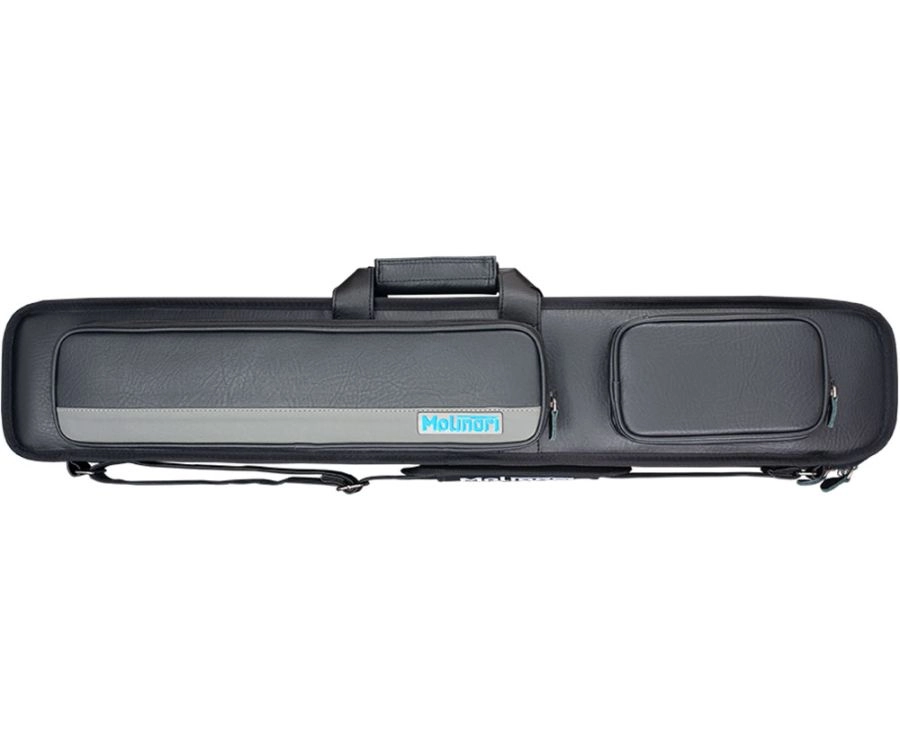 Our pool cues are our prized possessions so when we take them with us to tournaments or local pool halls, we want to know our cues are well protected. With a butterfly style opening and extended zippers on the butt end slots, you can quickly and easily get your cues out of the case and put away in the blink of an eye. Loaded with accessory pockets, upgraded zippers and a ultra-vinyl outside material, the black and grey Molinari 3 butt and 6 shaft hybrid case is your new go-to pool cue case. Frank approves!Â