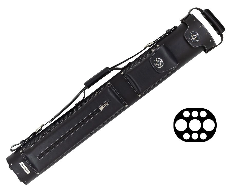The Tango Zonda has all the same great features of the MKT cases, like a one-piece body, reinforced lid with one-piece top handle, and extra-strong zinc alloy hardware, but is made from premium Argentinian artificial leather! The Zonda is available in black, and has a hi-cast Italian finish, making it the best looking and feeling artificial leather case we’ve ever had! The Zonda has plenty of room for accessories and jump handles, with a flip-top, zippered upper pocket and a large lower pocket with separate sleeve for a jump butt! The interior of this case features 9 extra-soft velvet lined tubes, 3 for butts and 6 for shafts.